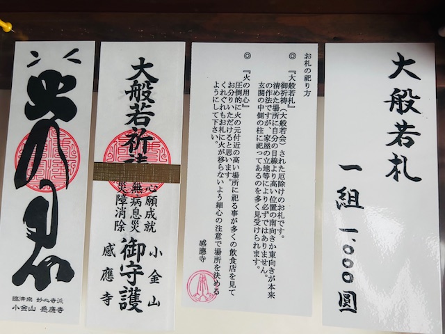 感應寺では毎年一年の初め1月15日に大般若会(だいはんにゃえ)を行います。大般若会では三蔵法師様が天竺より持ち帰ったと伝えられる「大般若経六百巻」の一部を、加担和尚様にもお集まりいただき大きな声を出して転読いたします。臨済宗にはしては珍しく賑やかな(?)行事です。大般若会は御祈祷としての供養も兼ね、お札(大般若札)を名香に薫じてお清めをいたします。
